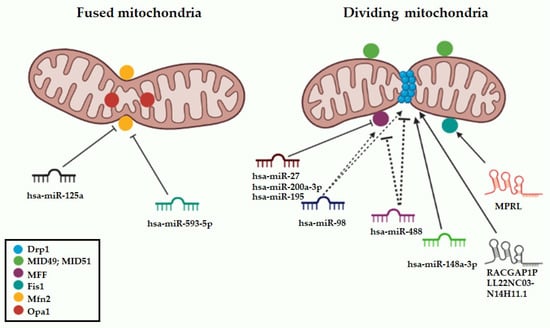 70. Tak, H.; Kim, J.; Jayabalan, A.K.; Lee, H.; Kang, H.; Cho, D.-H.; Ohn, T.; Nam, S.W.; Kim, W.; Lee, E.K. miR-27 regulates mitochondrial networks by directly targeting the mitochondrial fission factor. Exp. Mol. Med. 2014, 46, e123. [Google Scholar] [CrossRef]