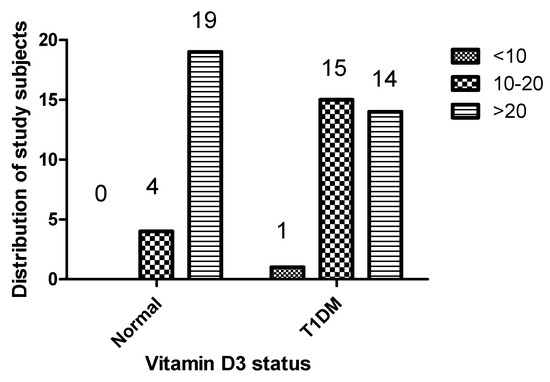- Ghamdi, A.H.A.; A Fureeh, A.; A Alghamdi, J.; Alkhuraimi, W.M.; A Alzahrani, F.; A Alzahrani, R.; A Alzahrani, A.; Alghamdi, A.M. High Prevalence of Vitamin D Deficiency among Saudi Children and Adolescents with Type 1 Diabetes in Albaha Region, Saudi Arabia. IOSR J. Pharm. Biol. Sci. 2017, 12, 5–10. [Google Scholar] [CrossRef]