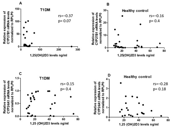 - Ramos-Lopez, E.; Brück, P.; Jansen, T.; Pfeilschifter, J.M.; Radeke, H.H.; Badenhoop, K. CYP2R1-, CYP27B1- and CYP24-mRNA expression in German type 1 diabetes patients. J. Steroid Biochem. Mol. Biol. 2007, 103, 807–810. [Google Scholar] [CrossRef]