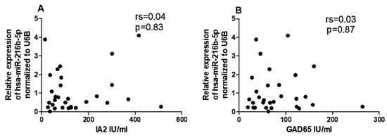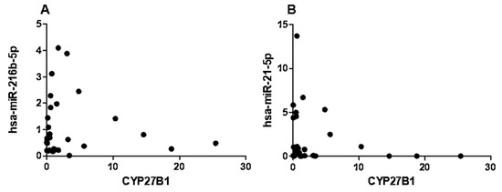 2.5. CYP27B1 Not Correlated with hsa-miR-216b-5p and hsa-miR-21-5p in T1DM