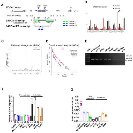 Dutriaux, A.; Diazzi, S.; Bresesti, C.; Hardouin, S.; Deshayes, F.; Collignon, J.; Flagiello, D. LADON, a Natural Antisense Transcript of NODAL, Promotes Tumour Progression and Metastasis in Melanoma. Non-Coding RNA 2023, 9, 71. https://doi.org/10.3390/ncrna9060071