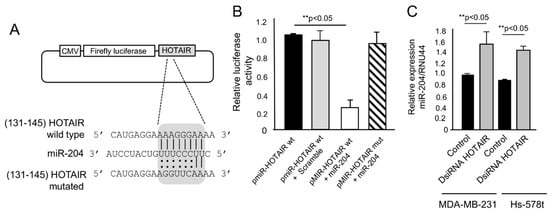 2.4. HOTAIR Sponges the Tumor Suppressor miR-204