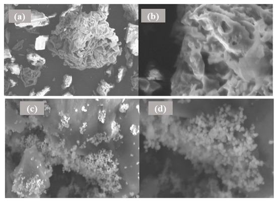 (a) FESEM analysis of JFP before adsorption; (b) FESEM analysis of JFP after adsorption; (c) FESEM analysis of ZJFP before adsorption; (d) FESEM analysis of ZJFP after adsorption [53] (reprinted with permission).