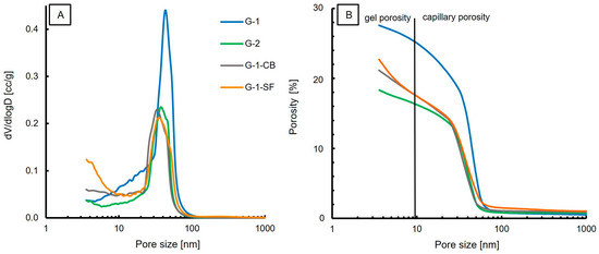 2 adsorption. Especially, sample G-1-SF showed significant differences concerning pore size, porosity, and surface area obtained by the two methods applied (
