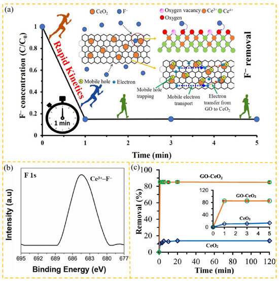 - Rashid, U.S.; Das, T.K.; Sakthivel, T.S.; Seal, S.; Bezbaruah, A.N. GO-CeO2 nanohybrid for ultra-rapid fluoride removal from drinking water. Sci. Total Environ. 2021, 793, 148547. [Google Scholar] [CrossRef]