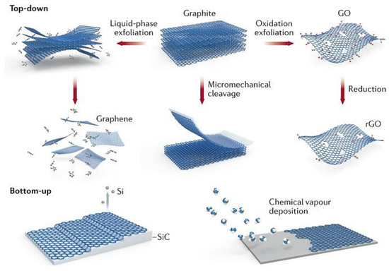 Different synthesis methods for graphene-based materials (reproduced with permission from [35]).