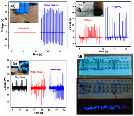 - Delgado-Alvarado, E.; Elvira-Hernández, E.A.; Hernández-Hernández, J.; Huerta-Chua, J.; Vázquez-Leal, H.; Martínez-Castillo, J.; García-Ramírez, P.J.; Herrera-May, A.L. Recent Progress of Nanogenerators for Green Energy Harvesting: Performance, Applications, and Challenges. Nanomaterials 2022, 12, 2549. [Google Scholar] [CrossRef] [PubMed]