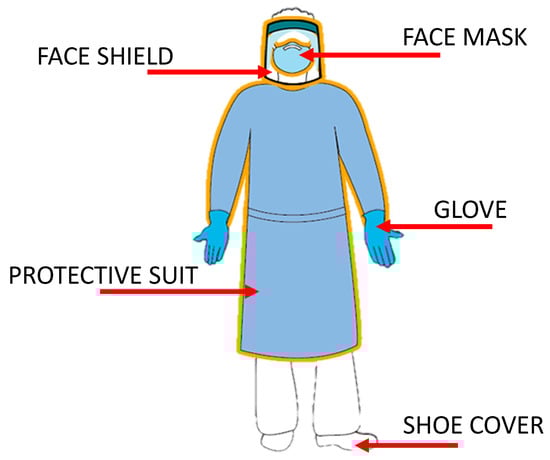 In the last 4 years, almost all countries in this world have been attacked by severe acute respiratory syndrome coronavirus 2 (SARS-CoV-2), also known as coronavirus disease (COVID-19). This outbreak caused the World Health Organization (WHO) to declare the recent situation to be a pandemic in March 2020 due to the massive transmission of the COVID-19 virus that was infecting the majority of the worldwide population [1]. Since then, many preventive steps have been implemented in an attempt to slow down the spread of the infection, including the usage of face masks (FMs), which is essential in controlling the transmission of the virus [2]. The use of protective gear has also been widely employed, particularly in the medical line and among the general population in public areas, to prevent the COVID-19 virus infection from spreading. Protective gear (Figure 1) is commonly referred to as personal protective equipment (PPE) and consists of FMs, gloves, face shields, protective suits, and shoe covers. It is mandatory for frontline health workers, while FMs have become a necessity for the general public worldwide.