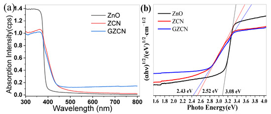 UV–vis diffuse reflectance spectra (a) and Kubelka–Munk transformation (b) of ZCN and GZCN.