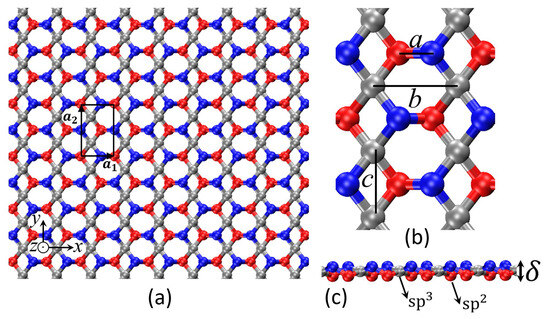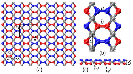 - de Vasconcelos, F.M.; Souza Filho, A.G.; Meunier, V.; Girão, E.C. Electronic and structural properties of tetragraphenes. Carbon 2020, 167, 403–413. [Google Scholar] [CrossRef]