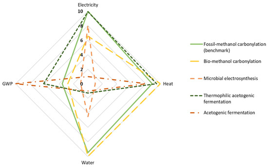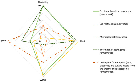 - Budsberg, E.; Morales-Vera, R.; Crawford, J.T.; Bura, R.; Gustafson, R. Production Routes to Bio-Acetic Acid: Life Cycle Assessment. Biotechnol. Biofuels 2020, 13, 154. [Google Scholar] [CrossRef] [PubMed]