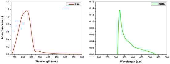 UV–Vis absorption spectra of BSA (red line) and CQDs (green line).