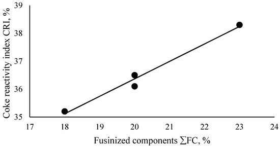 Dependence of the coke reactivity index and the content of fusinized components.