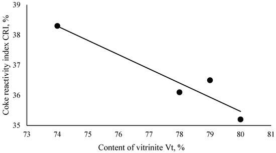 Dependence of the coke reactivity index and the content of vitrinite.