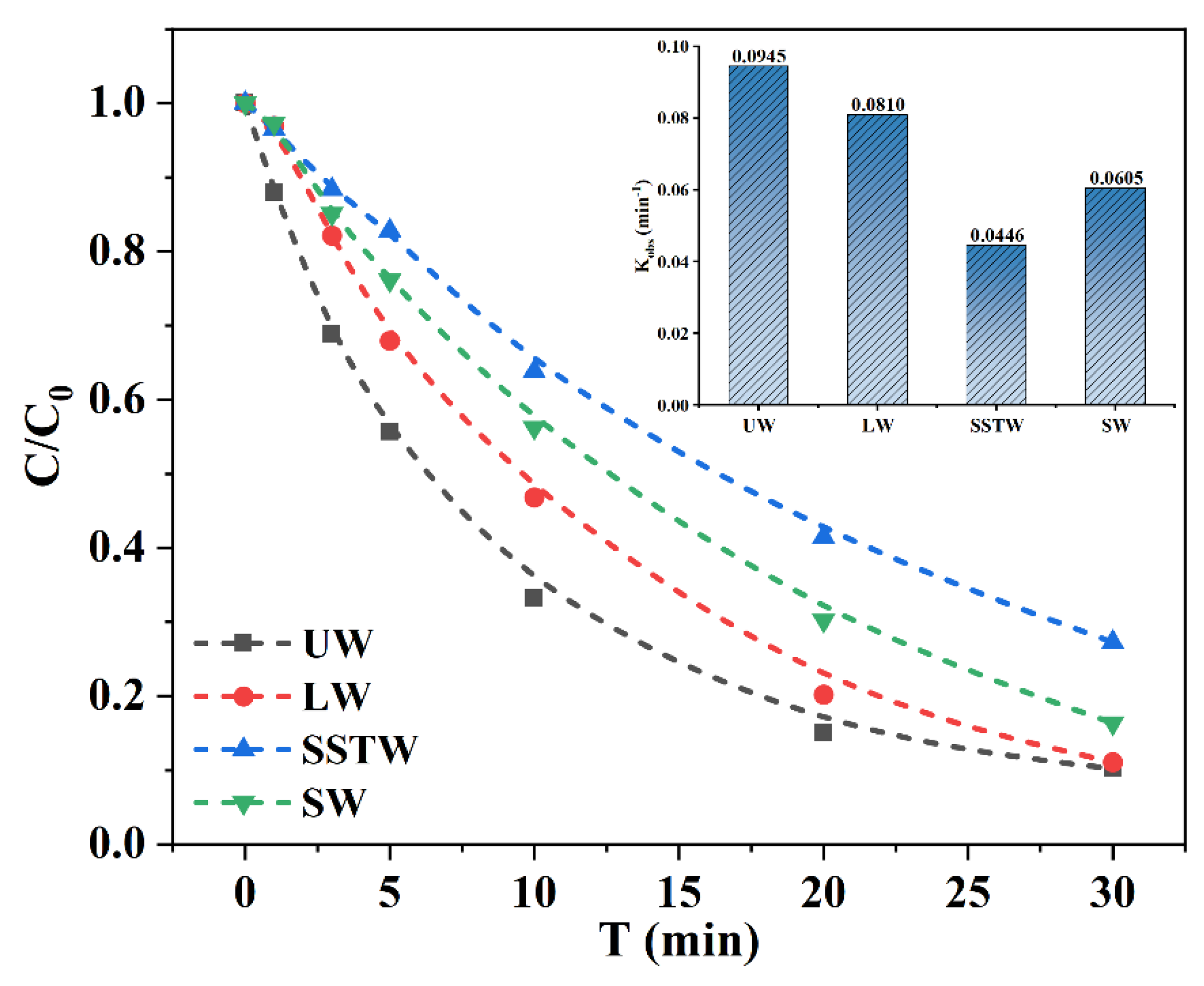 3.2. Influence of Water Matrices