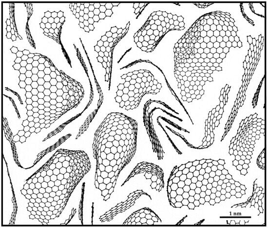 - Buseck, P.R.; Huang, B.; Keller, L.P. Electron Microscope Investigation of the Structures of Annealed Carbons. Energy Fuels 1987, 1, 105–110. [Google Scholar] [CrossRef]
