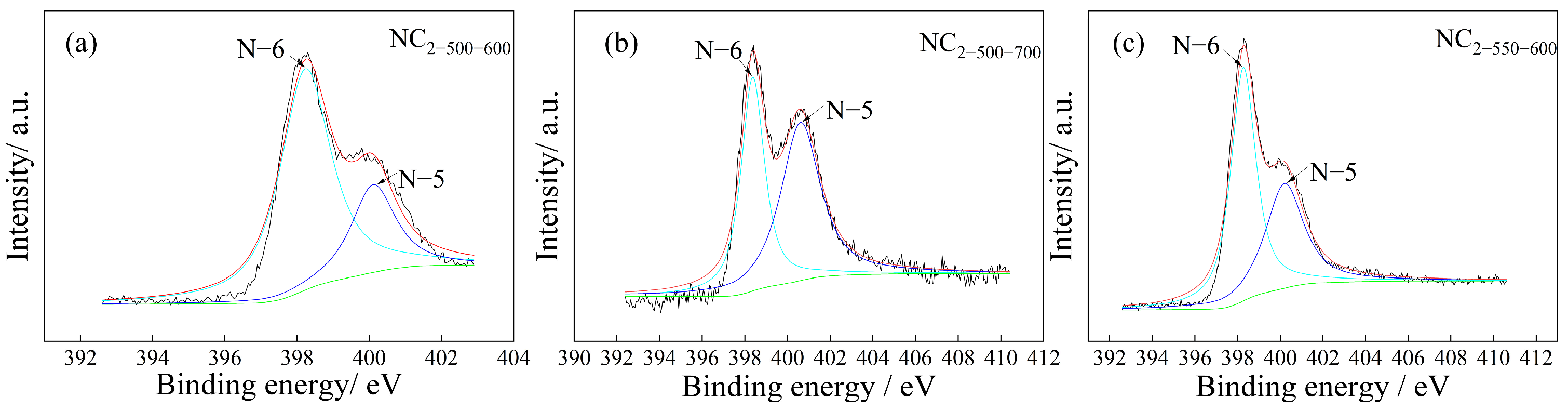 - The obtained materials were amorphous activated carbons with abundant micropores and high specific surface area. Nitrogen was primarily incorporated as pyridinic-N (N-6), and its content increased with the doping ratio but decreased at elevated carbonization and activation temperatures.