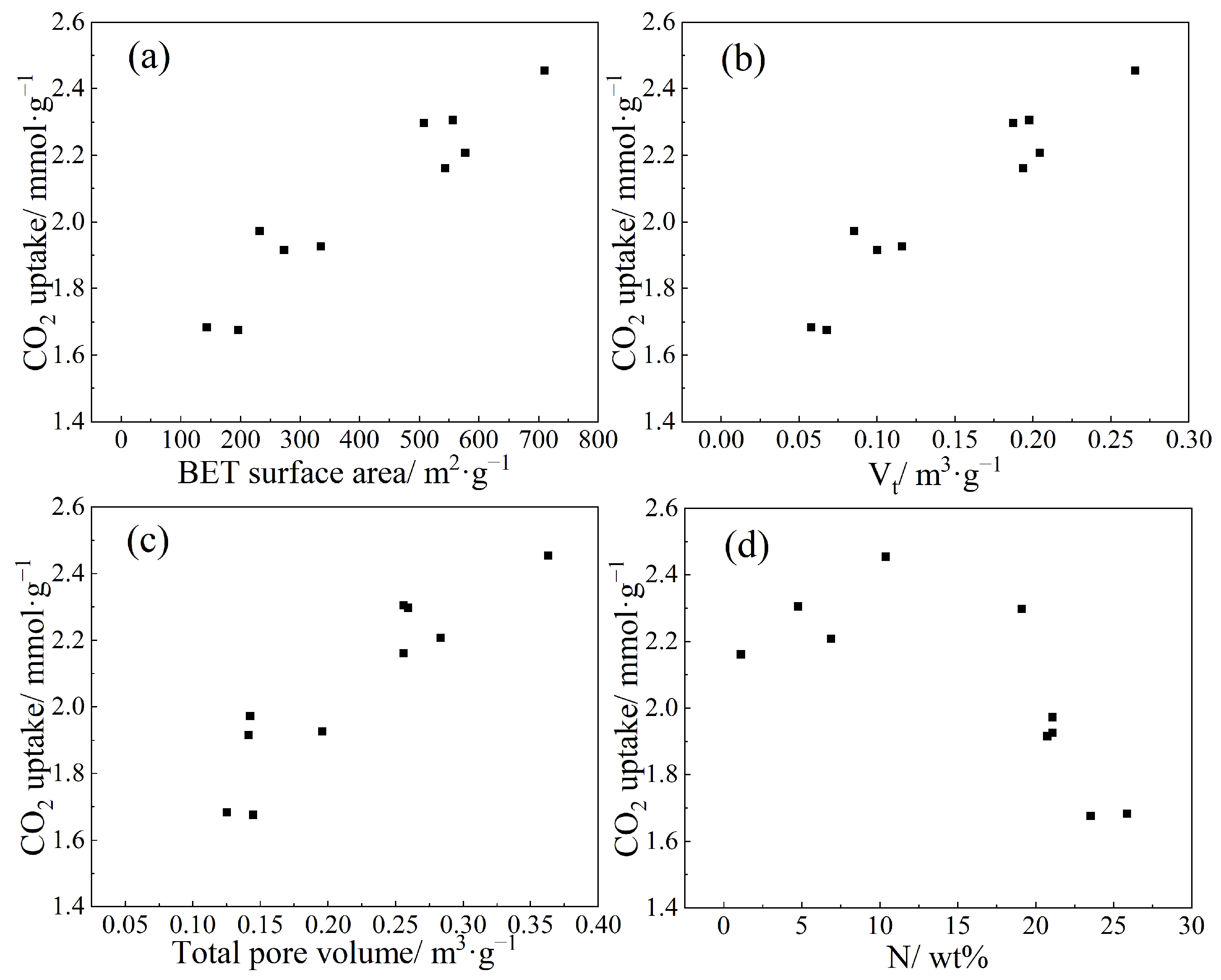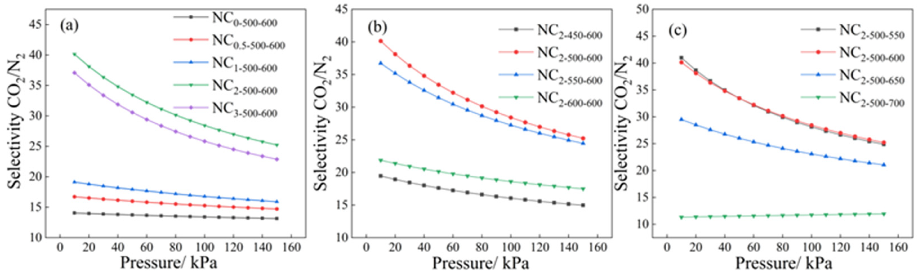 - An appropriate amount of nitrogen doping enhances CO2 adsorption performance, whereas excessive doping leads to pore structure deterioration and reduced adsorption capacity.