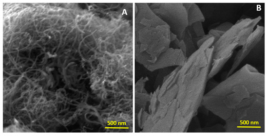 FEG-SEM images of (A) CNT and (B) GNP.