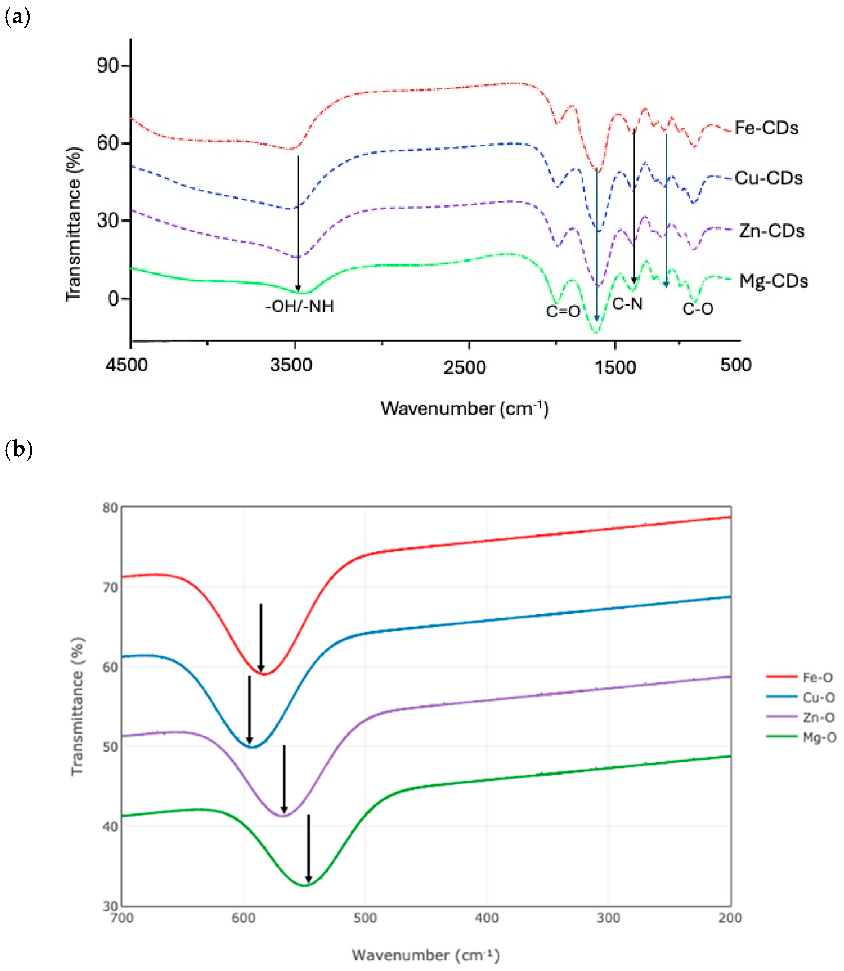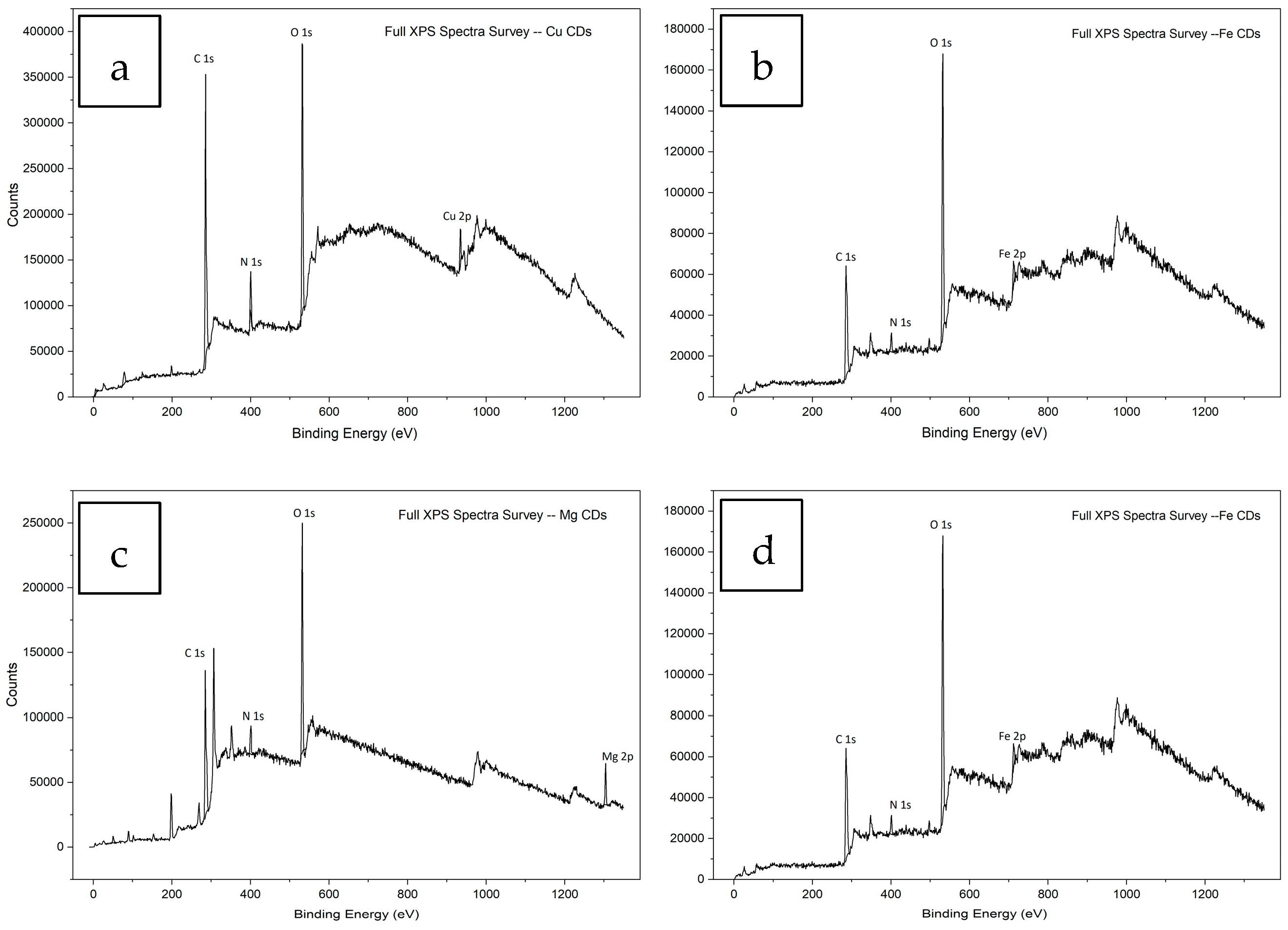 3.1. Characterisation of Metal-Doped CDs and Their Catalytic Implications