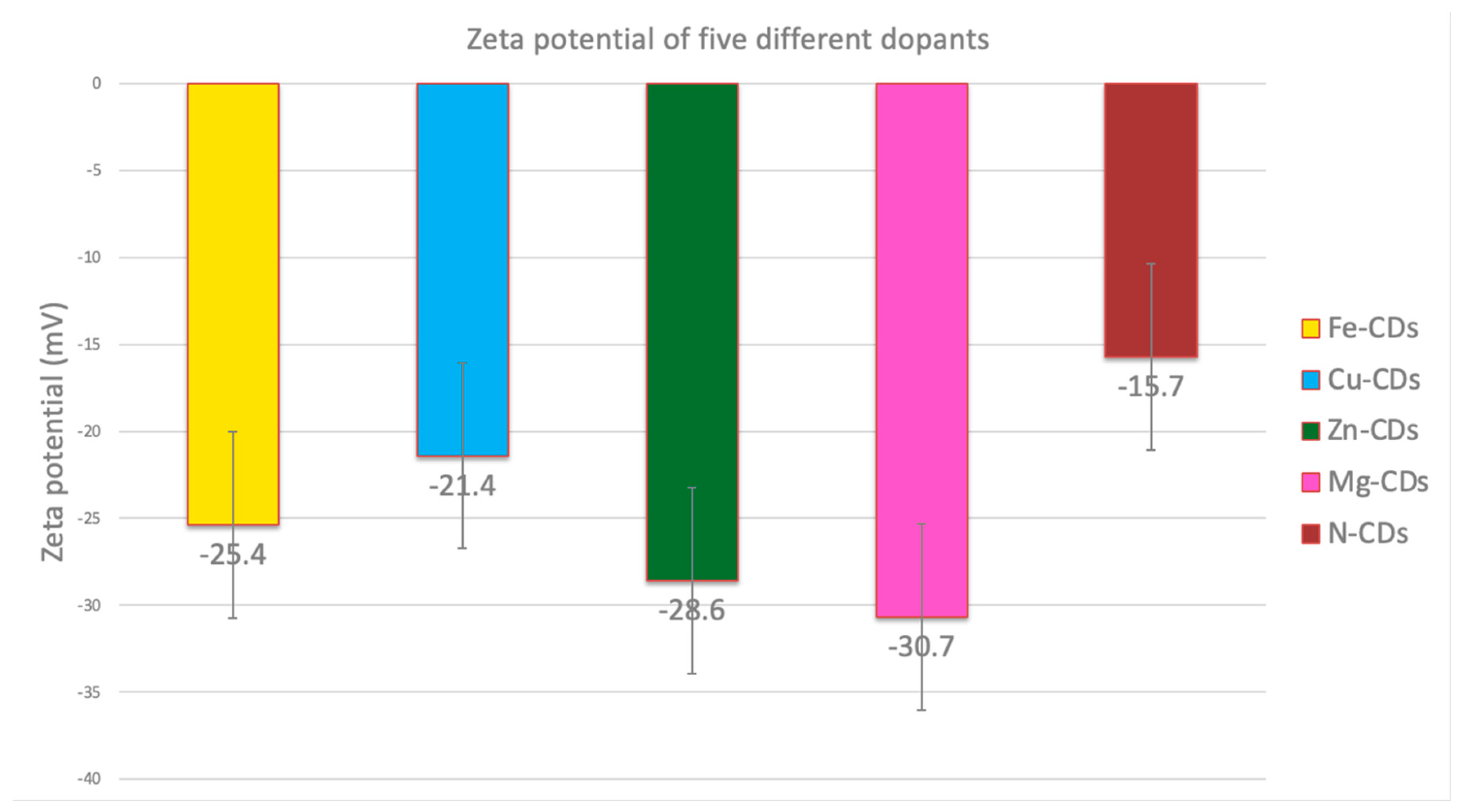 - Xu, Q.; Cai, W.; Zhang, M.; Su, R.; Ye, Y.; Li, Y.; Zhang, L.; Guo, Y.; Yu, Z.; Li, S.; et al. Photoluminescence mechanism and applications of Zn-Doped Carbon Dots. RSC Adv. 2018, 8, 17254–17262. [Google Scholar] [CrossRef]