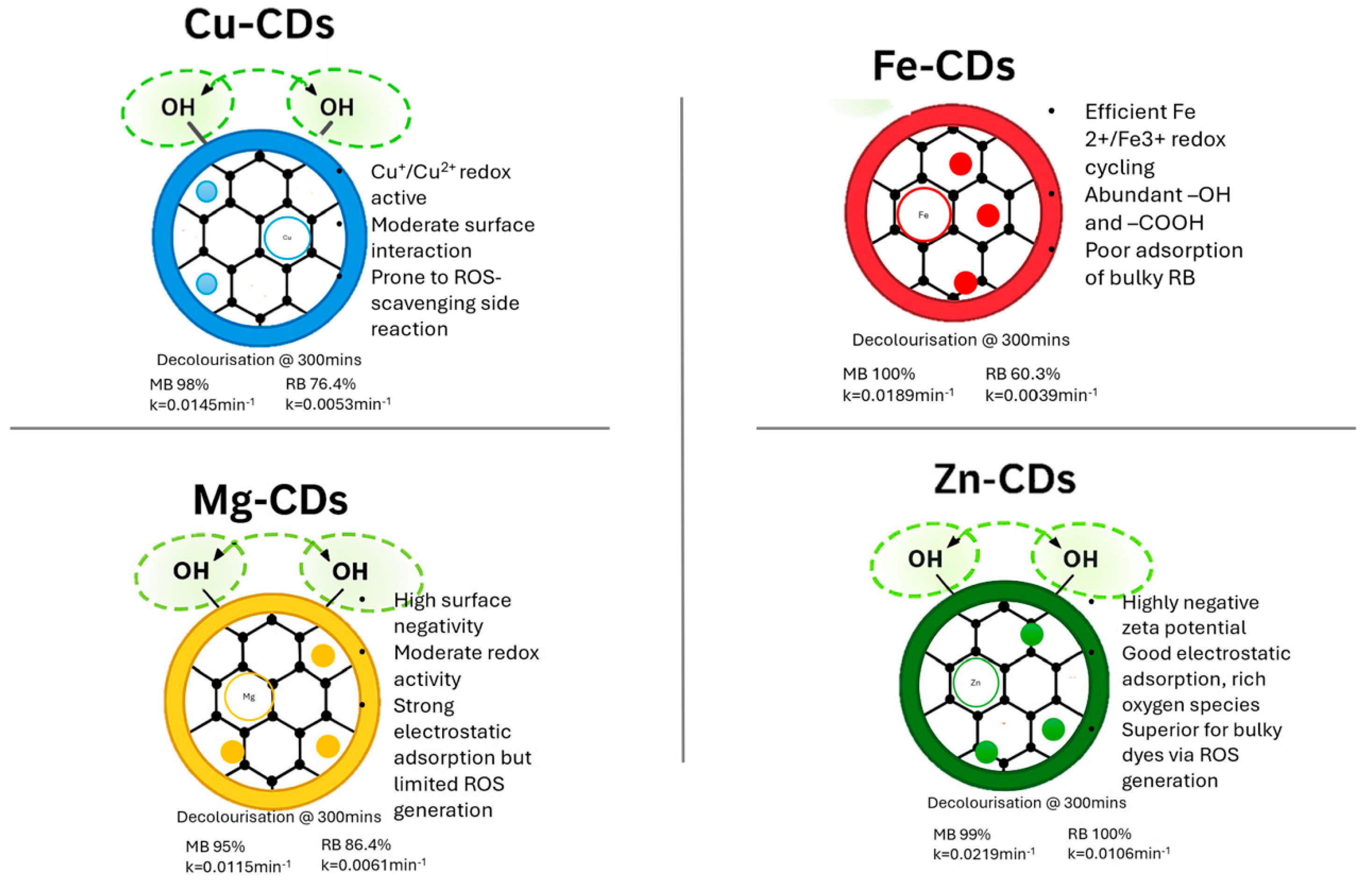 Chicago/Turabian StyleChen, Weiyun, Ivan Cole, Andrew S. Ball, and Hong Yin. 2025. "Metal-Doped Carbon Dots as Heterogeneous Fenton Catalysts for the Decolourisation of Dyes—Activity Relationships and Mechanistic Insights" C 11, no. 4: 87. https://doi.org/10.3390/c11040087