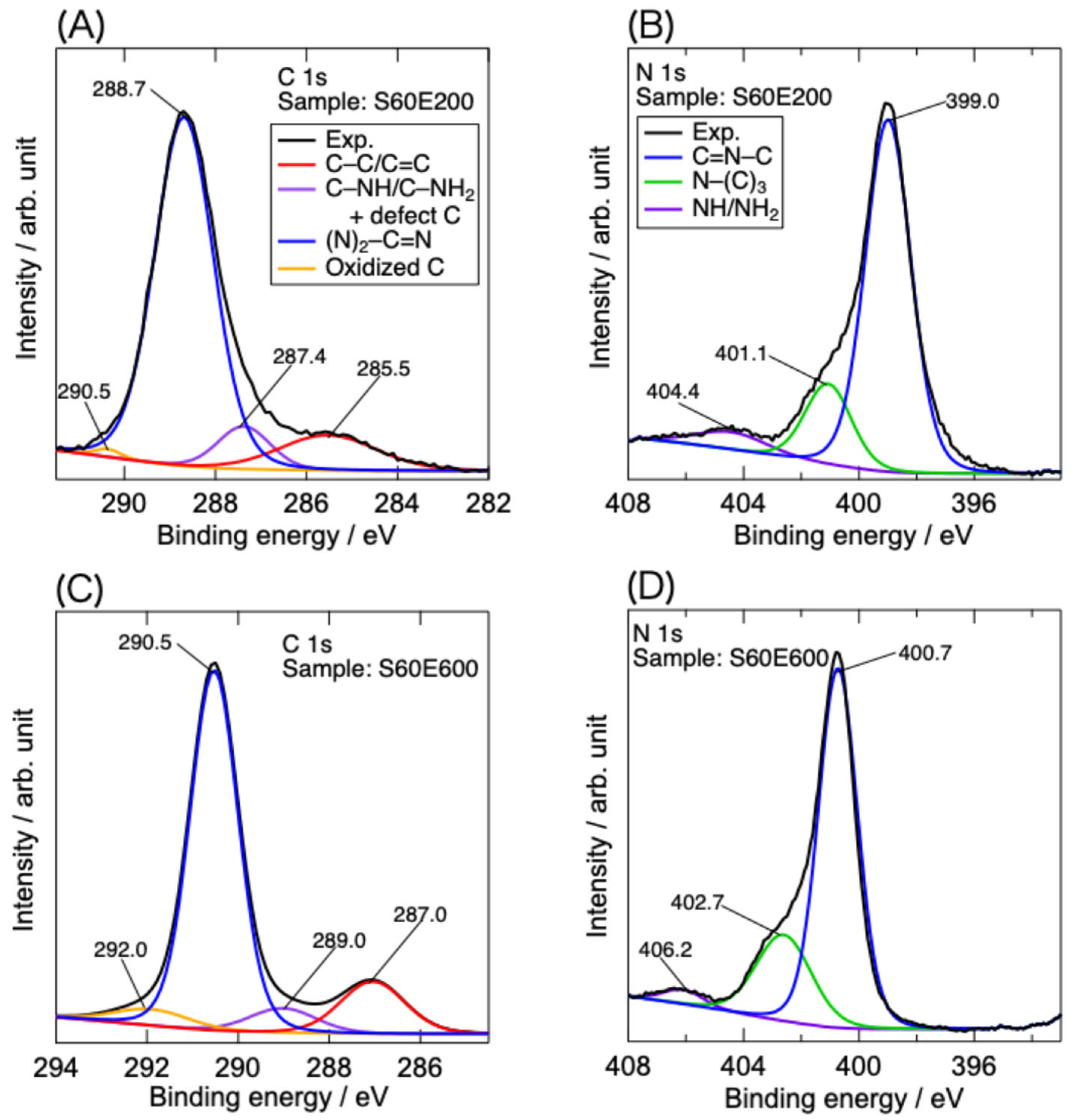 - Mendes, R.G.; Ta, H.Q.; Yan, X.; Bachmatiuk, A.; Praus, P.; Mamakhel, A.; Iversen, B.B.; Su, R.; Gemming, T.; Rümmeli, M.H. Tailoring the stoichiometry of C3N4 nanosheets under electron beam irradiation. Phys. Chem. Chem. Phys. 2021, 23, 4747–4756. [Google Scholar] [CrossRef]
