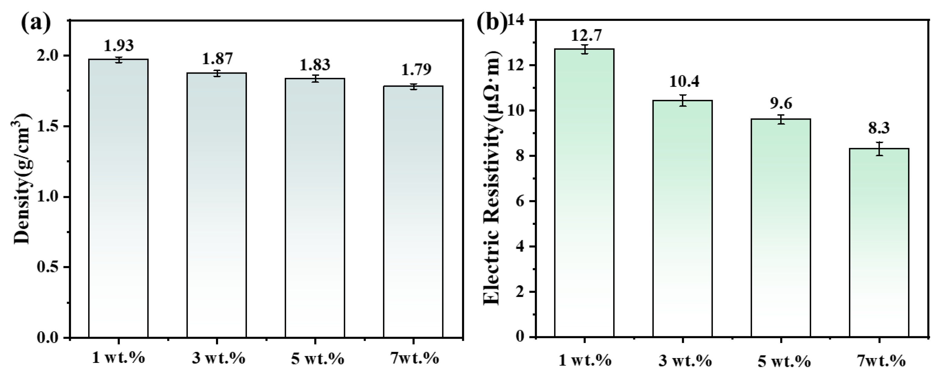 Figure 3a, the density of the material gradually decreases with the increase of carbon fiber content, from the maximum value of 1.93 g/cm