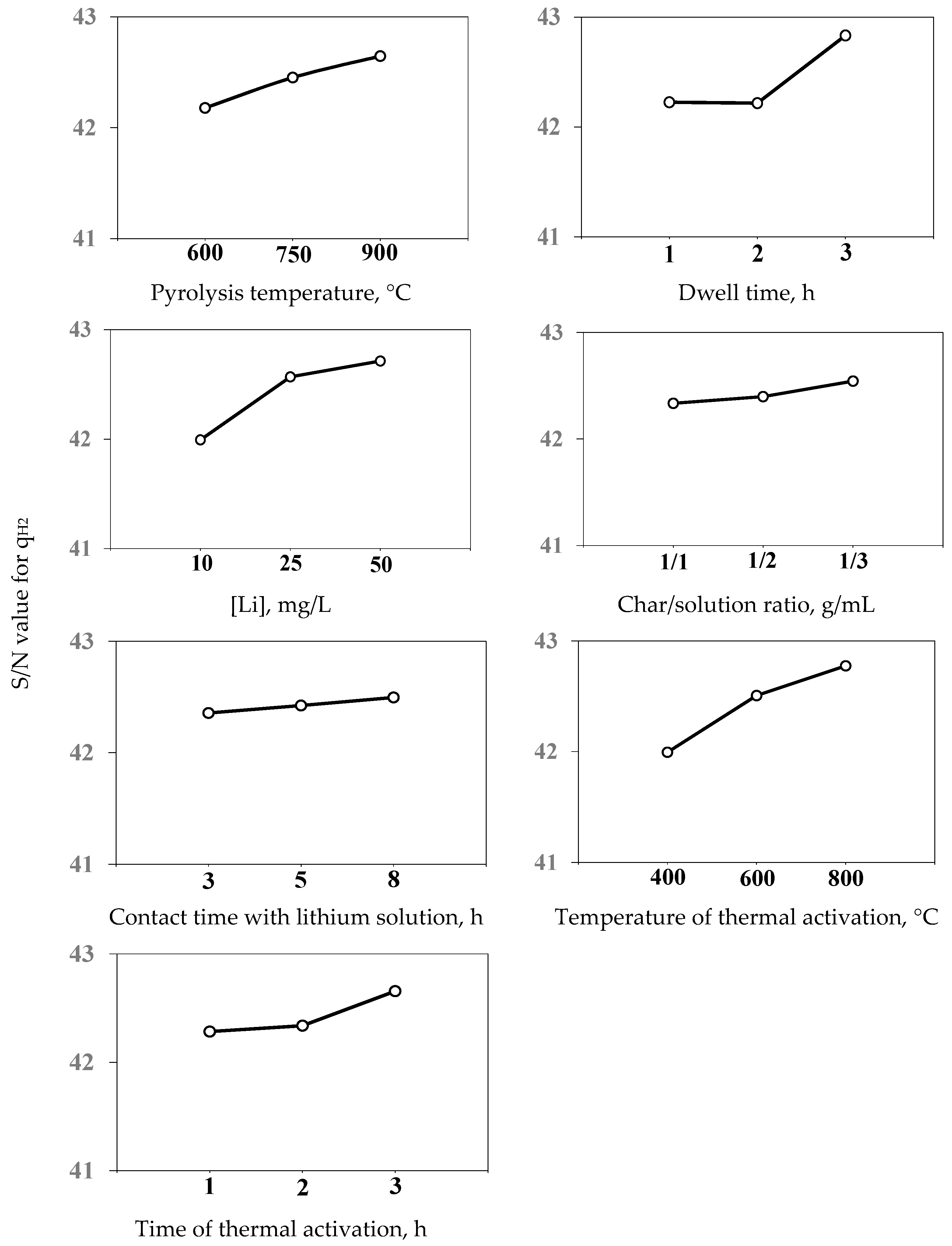 | Sample | Temperature, °C | Time, h | [Li], mg/L | Char/Solution Ratio, g/mL | Time, h | Temperature, °C | Time, h |