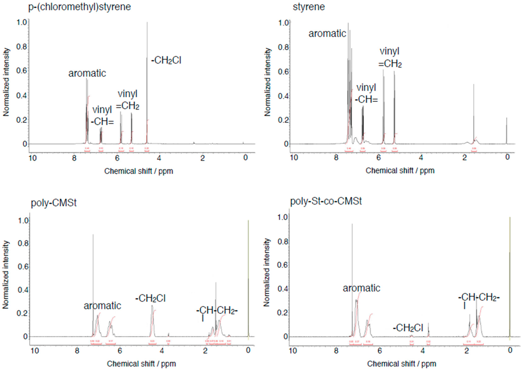 3.2. Preparation of Poly(4-shloromethyl)styrene and Styrene/(4-chloromethyl)styrene Copolymer