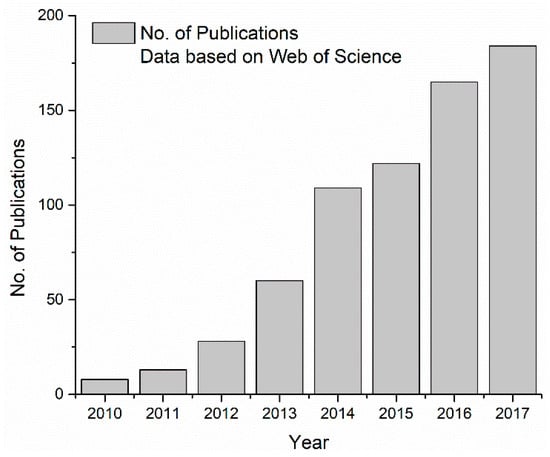 Number of publications in Web of Science with topic on “Silicon + Anode + Graphene” from 2010 to 2017.