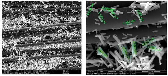 - Zhu, S.; Su, C.-H.; Lehoczky, S.L.; Muntele, I.; Ila, D. Carbon nanotube growth on carbon fibers. Diam. Relat. Mater. 2003, 12, 1825–1828. [Google Scholar] [CrossRef]