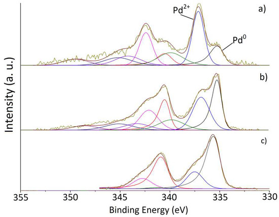 - Militello, M.C. Palladium Oxide (PdO) by XPS. Surf. Sci. Spectra 1994, 3, 395. [Google Scholar] [CrossRef]