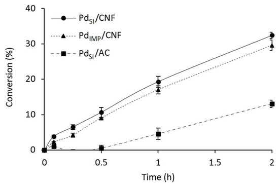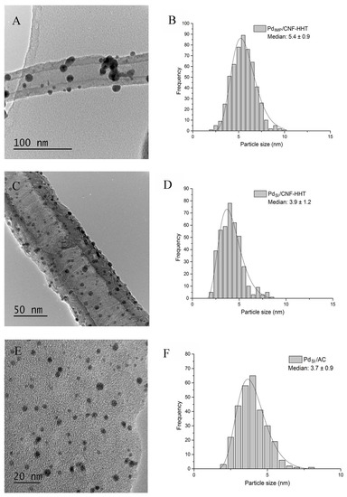 2.2. Characterisation of the Pd/CNF Series Catalysts