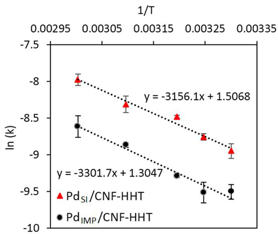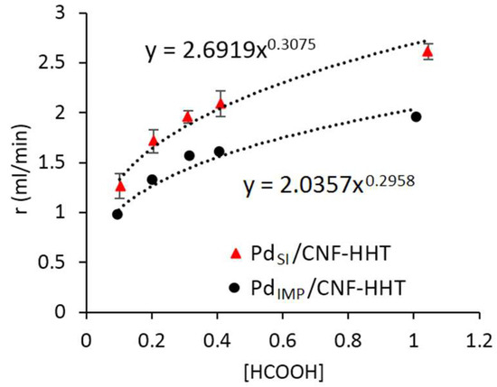 3.3. Kinetic Studies for Pd/CNF for Liquid Phase Formic Acid Decomposition