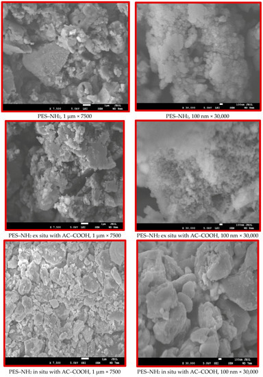 2 with AC–COOH in situ are different. The SEM images exhibited aggregations in the particles of PES–NH