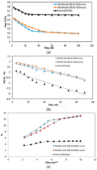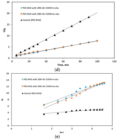 qe, exp) confirmed that the first order kinetic model is not a suitable model to describe the adsorption of acid red species onto the used PES–NH