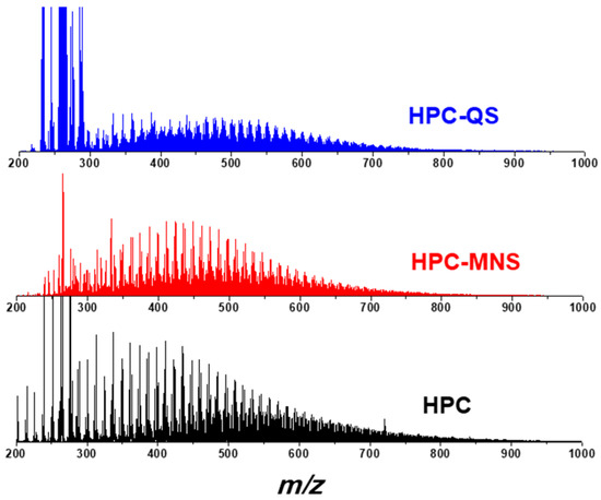 Molecular weight distribution of HPC, HPC-MNS and HPC-QS.