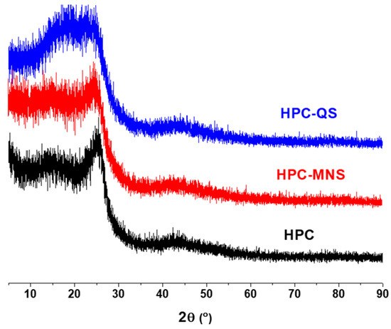 XRD patterns of HPC, HPC-MNS and HPC-QS.