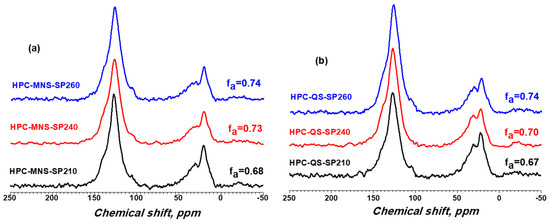13C-NMR spectra of HPC-MNS (a) and HPC-QS (b) derived pitches.