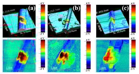 Figure 2b,c). During the first pass of KPFM scan a topographic image is acquired [