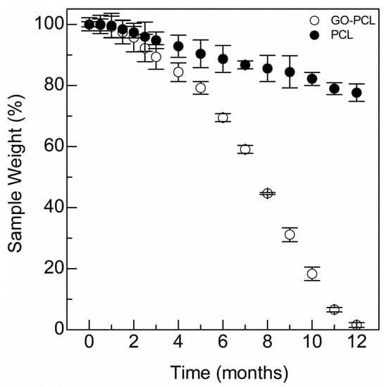 Degradation kinetics of the GO–PCL patch compared with the virgin PCL sample.
