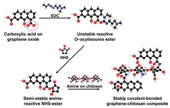 Reaction pathways of EDC and NHS intermediated functionalization of GO with chitosan. Reprinted with permission from [158].