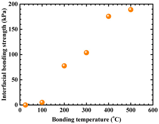 Dependence of the interfacial mechanical bonding strength on bonding temperature for the samples with HF surface pretreatment for bonding approach (1).