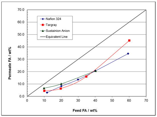 | Nafion® 324 | 40 | 90.77 | 9.23 | 96.74 | 3.26 | 3.02 | H2O | 0.463 | FA | 0.016 | 29.7 |