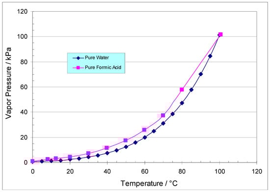 3.5. Examination of Formic Acid and Water Vapor Pressure and VLE Properties in View of the Membrane Pervaporation Results