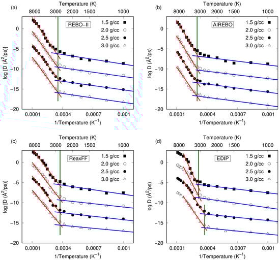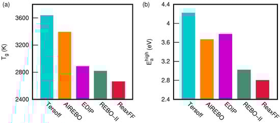 - Tersoff, J. Empirical interatomic potential for carbon, with applications to amorphous carbon. Phys. Rev. Lett. 1988, 61, 2879–2882. [Google Scholar] [CrossRef]