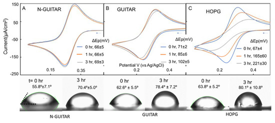 - Ji, X.; Banks, C.E.; Crossley, A.; Compton, R.G. Oxygenated Edge Plane Sites Slow the Electron Transfer of the Ferro-/Ferricyanide Redox Couple at Graphite Electrodes. ChemPhysChem 2006, 7, 1337–1344. [Google Scholar] [CrossRef] [PubMed]