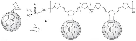 - Biglova, Y.N.; Mustafin, A.G.; Torosyan, S.A.; Biglova, R.Z.; Miftakhov, M.S. Ring-opening metathesis polymerization (ROMP) of fullerene-containing monomers in the presence of a first-generation Grubbs catalyst. Kinet. Catal. 2017, 58, 111–121. [Google Scholar] [CrossRef]