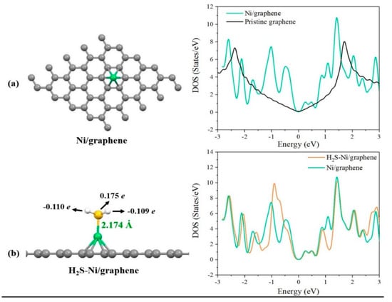 3.3. Adsorption of H2S on Pristine and Ni-Decorated Graphene Nanosheets